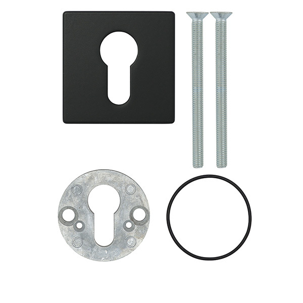 Декоративна накладка DISEC KT002 - це декоративний елемент, що призначений для надання дверним полотнам більш охайного вигляду. Використовується в парі із врізними броненакладками із замками і серцевинами стандарту EURO DIN. Кріпиться з внутрішньої сторони дверей за допомогою захисної шайби та гвинтів М6х40. Накладка дає можливість приховати монтажні отвори, подряпини та інші пошкодження, які можуть з’явитись при установці замка і серцевини. Виготовлена із латуні, має квадратну форму розміром 52х52 мм. В чорному кольорі найкраще буде доповнювати відповідного кольору протектор та двері аналогічних відтінків для того, щоб максимально уникнути контрастів та не привертати зайвої уваги. Монтаж відбувається доволі просто.