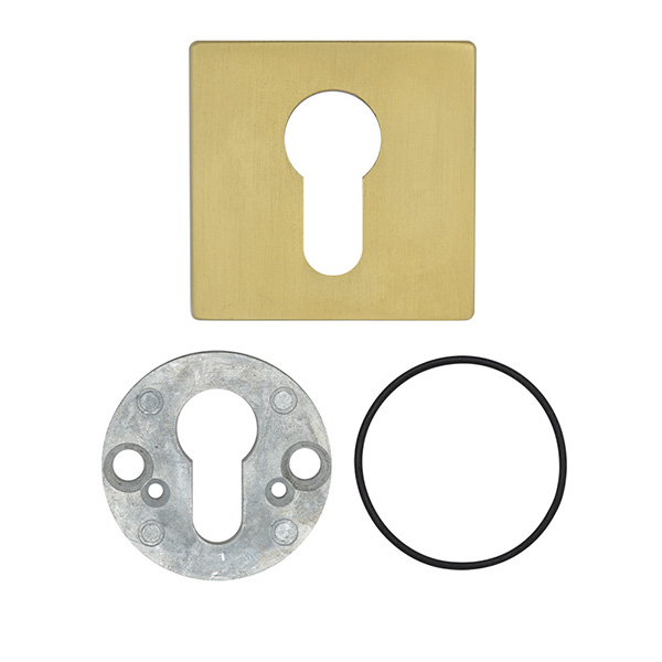 Декоративна накладка DISEC KT002 - це декоративний елемент, що призначений для надання дверним полотнам більш охайного вигляду. Використовується в парі із врізними броненакладками із замками і серцевинами стандарту EURO DIN. Кріпиться з внутрішньої сторони дверей за допомогою захисної шайби та гвинтів М6х40. Накладка дає можливість приховати монтажні отвори, подряпини та інші пошкодження, які можуть з’явитись при установці замка і серцевини. Виготовлена із латуні, має квадратну форму розміром 52х52 мм. В кольорі “латунь матова” найкраще буде доповнювати відповідного кольору протектор та двері світлих відтінків з бархатистим і соковитим покриттям - тим же шпоном вишні або груші. Монтаж відбувається доволі просто.