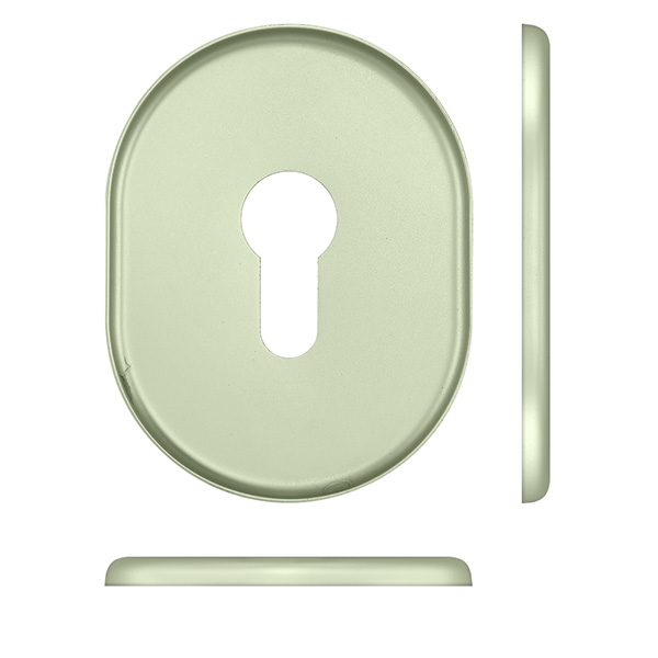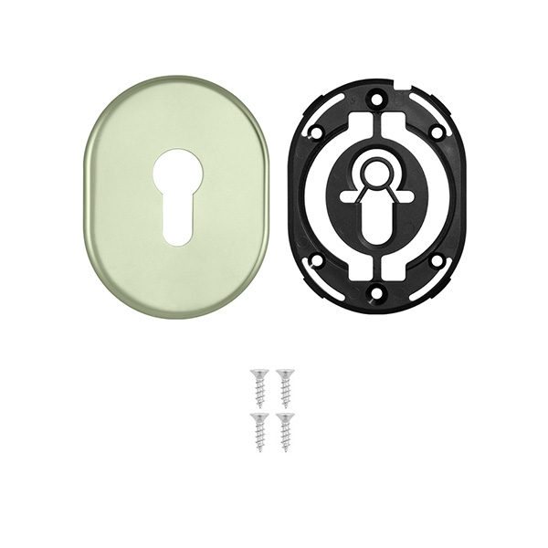 Декоративна накладка DISEC KT036 - це декоративний елемент, що призначений для надання дверним полотнам більш охайного вигляду. Використовується в парі із врізними броненакладками із замками і серцевинами стандарту EURO DIN. Кріпиться з внутрішньої сторони дверей за допомогою пластика та саморізів. Накладка дає можливість приховати монтажні отвори, подряпини та інші пошкодження, які можуть з’явитись при установці замка і серцевини. Виготовлена із латуні, має овальну форму розміром 85х65 мм. В кольорі “алюміній шампань” найкраще буде доповнювати відповідного кольору протектор та двері світлих відтінків - від тепло-сірих до бежевих. Монтаж відбувається доволі просто.