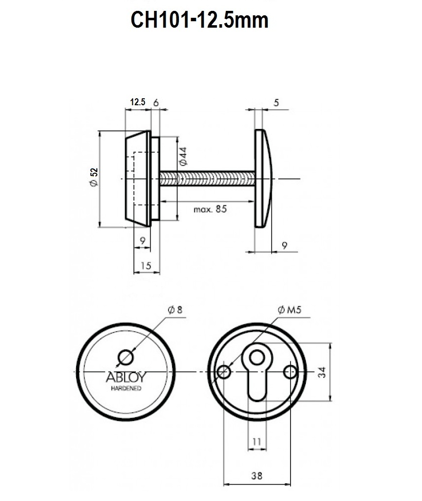 Протектор (або броненакладка) є обов'язковим аксесуаром вхідних дверей для захисту Вашої оселі. Оскільки їхньою найслабшою точкою є замок з серцевиною, то дуже часто злочинці намагаються потрапити всередину приміщення просто вириваючи їх. Для протидії такому методу взлому і потрібна броненакладка. Дана модель ABLOY CH101 має круглий ключовий отвір і встановлюється на вхідні двері разом із серцевинами серій ABLOY PROTEC та NOVEL. Це захисний протектор з 3-м класом зламостійкості. Виготовлений із гартованої сталі. Монтується накладним методом. Він простіший за врізний та не потребує висвердлювання отворів для посадки броненакладки. Проте в такому випадку вона не утворює із замком монолітну конструкцію, через що легше дістатись до стяжних гвинтів і зрізати їх. Чашка дозволяє трохи втопити протектор, але всерівно простір між ним і серцевиною залишається. Саме кріплення здійснюється стяжними гвинтами М5. Довжина гвинтів дозволяє ставити броненакладку на дверні полотна товщиною від 40 до 80 мм. Таким чином, протектор захищає серцевину від фізичних та силових методів злому — свердління та вибивання. Його висота (або товщина) складає 12,5 мм, діаметр - 52 мм. В кольорі “хром-сатин” найкраще буде доповнювати двері світлих відтінків - від тепло-сірих до бежевих.
