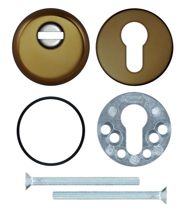Протектор (або броненакладка) є обов'язковим аксесуаром вхідних дверей для захисту Вашої оселі. Оскільки їхньою найслабшою точкою є замок з серцевиною, то дуже часто злочинці намагаються потрапити всередину приміщення просто вириваючи їх. Для протидії такому методу взлому і потрібна броненакладка. Дана модель DISEC BD54 DIN ROUND встановлюється на вхідні двері разом із замками і серцевинами стандарту EURO DIN. Це захисний протектор з 3-м класом зламостійкості. Виготовлений із гартованої сталі. Монтується накладним методом та може бути втопленим в накладку МДФ спеціальним кільцем (докуповується окремо). Протектор захищає від фізичних та силових методів злому — свердління, виламування та вибивання. Висота (або товщина) протектора складає 13 мм, діаметр - 54 мм. В бронзовому кольорі найкраще буде доповнювати двері з пильно-землистої палітри.