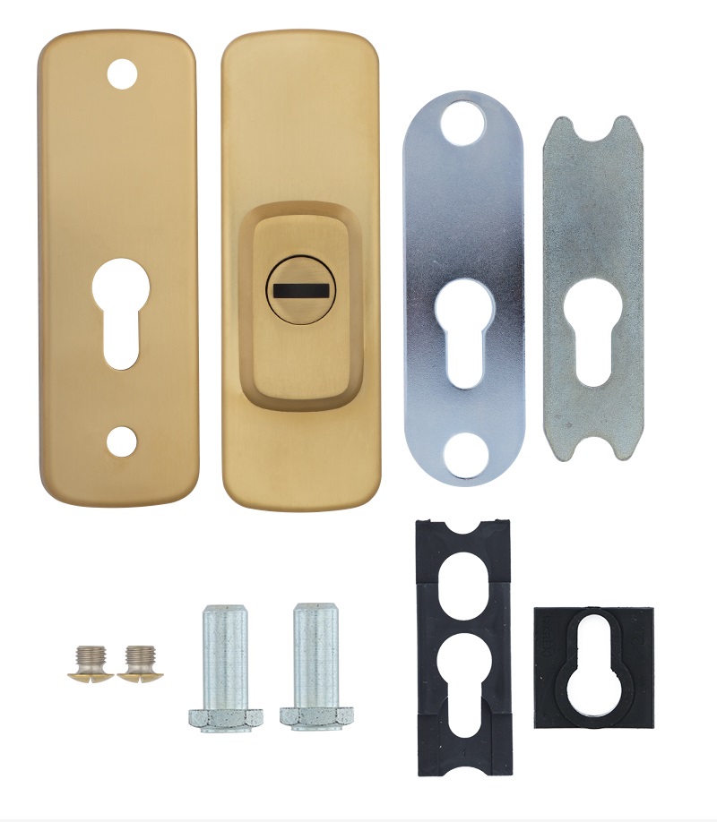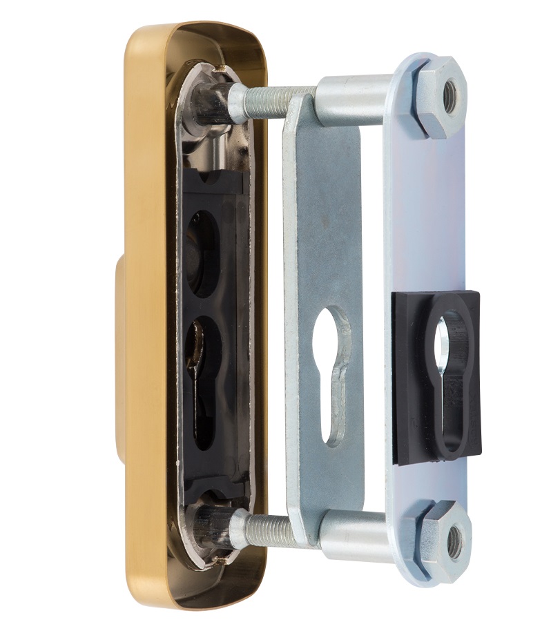 Захисна дверна фурнітура чеського виробника ROSTEX вже давно завоювала прихильність у власників квартир, будинків та комерційних приміщень. Обов'язковим аксесуаром вхідних дверей для захисту Вашої оселі є протектор (або броненакладка). Оскільки їхньою найслабшою точкою є замок з серцевиною, то дуже часто злочинці намагаються потрапити всередину приміщення просто вириваючи їх. Для протидії такому методу взлому і потрібна броненакладка. Дана модель ROSTEX Astra R3 встановлюється на вхідні металеві та дерев'яні двері разом із ДОДАТКОВИМ замком і серцевиною стандарту EURO DIN. По дизайну і кольору відповідає аналогічній моделі ручок на планці. Це захисний протектор з 3-м класом зламостійкості. Виготовлений із нержавіючої сталі, тому може використовуватись у вуличних умовах. Монтується накладним методом. Проте кріплення не стандартне горизонтальне, а вертикальне. Це потребує меншого за розміром додаткового замка для того, щоб закрутити через нього стяжні гвинти М8. Їхня довжина дозволяє ставити броненакладку на дверні полотна товщиною від 38 до 55 мм. Є додаткова можливість подовження до 100 мм. Ці цифри вказані з урахуванням того, що гвинти закручені на всю довжину кріпильного отвору. Таким чином, протектор захищає серцевину від фізичних та силових методів злому — свердління та вибивання. Особливістю цієї моделі є наявність всередині посиленої сталевої пластини, яка створює додатковий захист корпусу замка. При цьому вузький корпус дозволяє монтувати дану броненакладку на додаткові замки з бексетом від 30 мм. Висота (або товщина) протектора складає 22 мм. В кольорі “титан PVD матовий” найкраще буде доповнювати двері відповідних світлих відтінків.