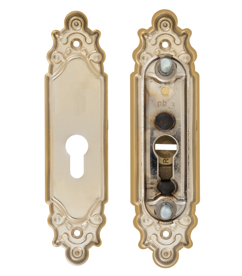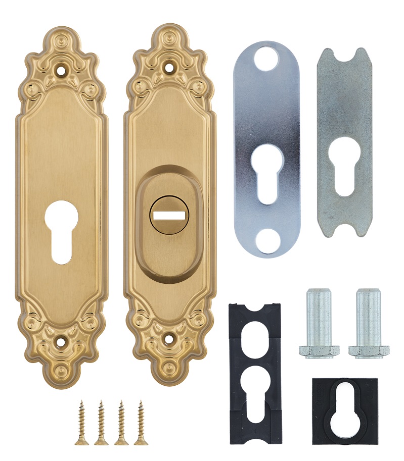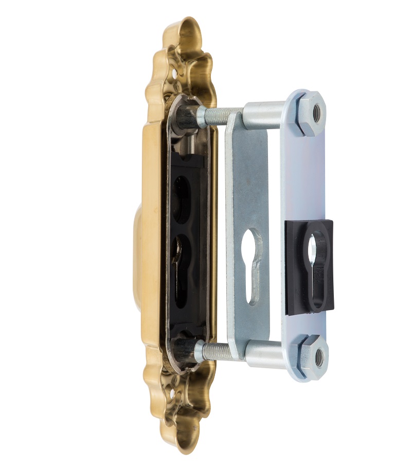 Захисна дверна фурнітура чеського виробника ROSTEX вже давно завоювала прихильність у власників квартир, будинків та комерційних приміщень. Обов'язковим аксесуаром вхідних дверей для захисту Вашої оселі є протектор (або броненакладка). Оскільки їхньою найслабшою точкою є замок з серцевиною, то дуже часто злочинці намагаються потрапити всередину приміщення просто вириваючи їх. Для протидії такому методу взлому і потрібна броненакладка. Дана модель ROSTEX Ozdobna R3 встановлюється на вхідні металеві та дерев'яні двері разом із ДОДАТКОВИМ замком і серцевиною стандарту EURO DIN. По дизайну і кольору відповідає аналогічній моделі ручок на планці. Це захисний протектор з 3-м класом зламостійкості. Виготовлений із нержавіючої сталі, тому може використовуватись у вуличних умовах. Монтується накладним методом. Проте кріплення не стандартне горизонтальне, а вертикальне. Це потребує меншого за розміром додаткового замка для того, щоб закрутити через нього стяжні гвинти М8. Їхня довжина дозволяє ставити броненакладку на дверні полотна товщиною від 38 до 55 мм. Є додаткова можливість подовження до 100 мм. Ці цифри вказані з урахуванням того, що гвинти закручені на всю довжину кріпильного отвору. Таким чином, протектор захищає серцевину від фізичних та силових методів злому — свердління та вибивання. Особливістю цієї моделі є наявність всередині посиленої сталевої пластини, яка створює додатковий захист корпусу замка. При цьому вузький корпус дозволяє монтувати дану броненакладку на додаткові замки з бексетом від 30 мм. Висота (або товщина) протектора складає 22 мм. Дана модель виконана в цікавій авангардній обробці в кольорі “титан PVD матовий”, тому особливо вдало доповнить відповідний дизайн приміщення та двері світлих відтінків.