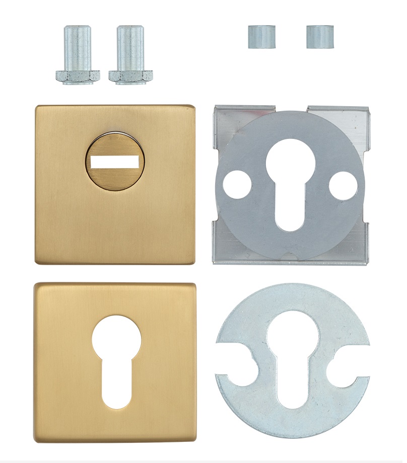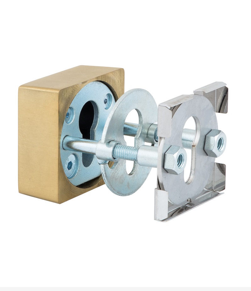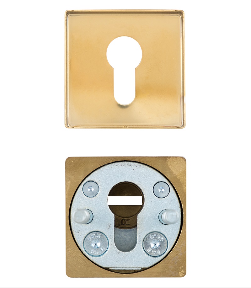 Захисна дверна фурнітура чеського виробника ROSTEX вже давно завоювала прихильність у власників квартир, будинків та комерційних приміщень. Обов'язковим аксесуаром вхідних дверей для захисту Вашої оселі є протектор (або броненакладка). Оскільки їхньою найслабшою точкою є замок з серцевиною, то дуже часто злочинці намагаються потрапити всередину приміщення просто вириваючи їх. Для протидії такому методу взлому і потрібна броненакладка. Дана модель ROSTEX Quadrum R3/H встановлюється на вхідні двері разом із замками і серцевинами стандарту EURO DIN. Це захисний протектор з 3-м класом зламостійкості. Виготовлений із нержавіючої сталі, тому може використовуватись у вуличних умовах. Монтується накладним методом. Він простіший за врізний та не потребує висвердлювання отворів для посадки броненакладки. Проте в такому випадку вона не утворює із замком монолітну конструкцію, через що легше дістатись до стяжних гвинтів і зрізати їх. Простір між протектором і серцевиною, хоч і мінімальний, проте залишається. Саме кріплення здійснюється стяжними гвинтами М7. Довжина гвинтів дозволяє ставити броненакладку на дверні полотна товщиною від 38 до 45 мм. Є додаткова можливість подовження до 100 мм. Ці цифри вказані з урахуванням того, що гвинти закручені на всю довжину кріпильного отвору. Таким чином, протектор захищає серцевину від фізичних та силових методів злому — свердління та вибивання. Висота (або товщина) протектора складає 23 мм. Квадратна форма в кольорі “титан PVD матовий” найкраще буде доповнювати двері відповідних світлих відтінків.