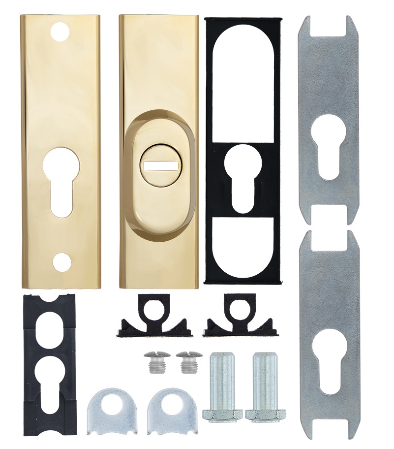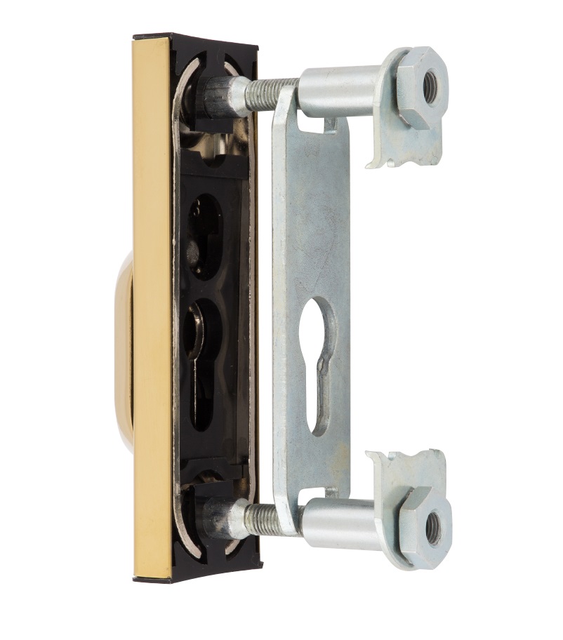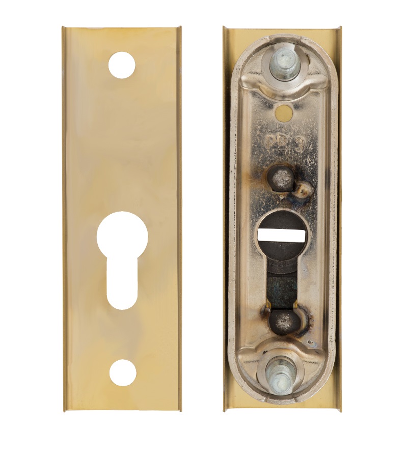 Захисна дверна фурнітура чеського виробника ROSTEX вже давно завоювала прихильність у власників квартир, будинків та комерційних приміщень. Обов'язковим аксесуаром вхідних дверей для захисту Вашої оселі є протектор (або броненакладка). Оскільки їхньою найслабшою точкою є замок з серцевиною, то дуже часто злочинці намагаються потрапити всередину приміщення просто вириваючи їх. Для протидії такому методу взлому і потрібна броненакладка. Дана модель ROSTEX R3 встановлюється на вхідні металеві та дерев'яні двері разом із ДОДАТКОВИМ замком і серцевиною стандарту EURO DIN. Це захисний протектор з 3-м класом зламостійкості. Виготовлений із нержавіючої сталі, тому може використовуватись у вуличних умовах. Монтується накладним методом. Проте кріплення не стандартне горизонтальне, а вертикальне. Це потребує меншого за розміром додаткового замка для того, щоб закрутити через нього стяжні гвинти М8. Їхня довжина дозволяє ставити броненакладку на дверні полотна товщиною від 38 до 55 мм. Є додаткова можливість подовження до 100 мм. Ці цифри вказані з урахуванням того, що гвинти закручені на всю довжину кріпильного отвору. Таким чином, протектор захищає серцевину від фізичних та силових методів злому — свердління та вибивання. Особливістю цієї моделі є наявність всередині посиленої сталевої пластини, яка створює додатковий захист корпусу замка. При цьому вузький корпус дозволяє монтувати дану броненакладку на додаткові замки з бексетом від 30 мм. Висота (або товщина) протектора складає 22 мм. В кольорі “титан PVD” найкраще буде доповнювати двері відповідних світлих відтінків.