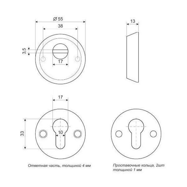 Протектор (або броненакладка) є обов'язковим аксесуаром вхідних дверей для захисту Вашої оселі. Оскільки їхньою найслабшою точкою є замок з серцевиною, то дуже часто злочинці намагаються потрапити всередину приміщення просто вириваючи їх. Для протидії такому методу взлому і потрібна броненакладка. Дана модель KALE Kilit 500 встановлюється на вхідні двері разом із замками і серцевинами стандарту EURO DIN. Це захисний загартований протектор з 2-м класом зламостійкості. Виготовлений із сталі. Комплектується шайбою. Монтується накладним методом: кріпиться довкола серцевини стяжними гвинтами М5x75. Таким чином, протектор захищає її від фізичних та силових методів злому — свердління та вибивання. Довжина гвинтів дозволяє ставити броненакладку на дверні полотна товщиною від 40 до 80 мм. Ці цифри вказані з урахуванням того, що гвинти закручені на всю довжину кріпильного отвору. Висота (або товщина) протектора складає 13 мм, діаметр - 55 мм. В хромованому кольорі найкраще буде доповнювати двері світлих відтінків - від тепло-сірих до бежевих.