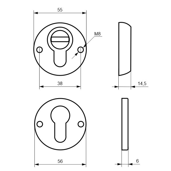 Протектор (або броненакладка) є обов'язковим аксесуаром вхідних дверей для захисту Вашої оселі. Оскільки їхньою найслабшою точкою є замок з серцевиною, то дуже часто злочинці намагаються потрапити всередину приміщення просто вириваючи їх. Для протидії такому методу взлому і потрібна броненакладка. Дана модель MUL-T-LOCK SL3 встановлюється на вхідні двері разом із замками і серцевинами стандарту EURO DIN. Це захисний протектор з 3-м класом зламостійкості. Виготовлений із гартованої сталі. Монтується накладним методом. Він простіший за врізний та не потребує висвердлювання отворів для посадки броненакладки. Проте в такому випадку вона не утворює із замком монолітну конструкцію, через що легше дістатись до стяжних гвинтів і зрізати їх. Чашка дозволяє трохи втопити протектор, але всерівно простір між ним і серцевиною залишається. Саме кріплення здійснюється стяжними гвинтами М8х75. Довжина гвинтів дозволяє ставити броненакладку на дверні полотна товщиною від 58 до 63 мм. Ці цифри вказані з урахуванням того, що гвинти закручені на всю довжину кріпильного отвору. Таким чином, протектор захищає серцевину від фізичних та силових методів злому — свердління та вибивання. Висота (або товщина) протектора складає 14,5 мм, діаметр - 55 мм. В кольорі “хром полірований” найкраще буде доповнювати двері світлих відтінків - від тепло-сірих до бежевих.