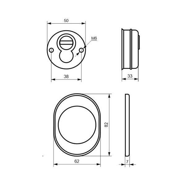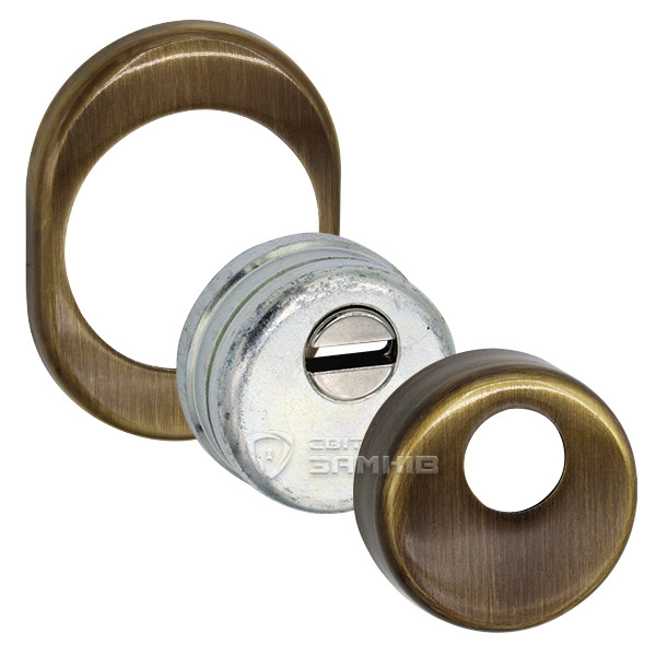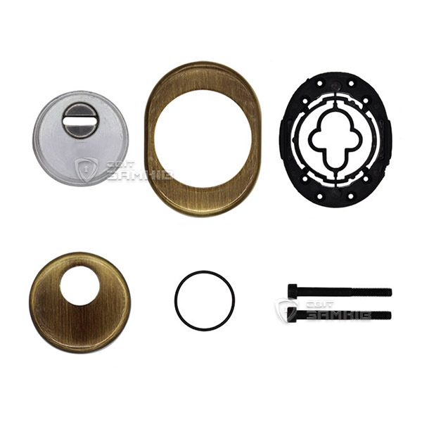 Для монтажу по його діаметру робиться отвір в дверному полотні. Кріпиться довкола серцевини стяжними гвинтами, створюючи монолітну конструкцію з нею. Таким чином, протектор захищає її разом із точкою кріплення в дверях від фізичних та силових методів злому — свердління, виламування та вибивання. Доступу до гвинтів кріплення немає і зірвати саму броненакладку надзвичайно складно. Висота (або товщина) її складає 25/33/42 мм, діаметр - 50 мм. В бронзовому кольорі найкраще буде доповнювати двері з пильно-землистої палітри.