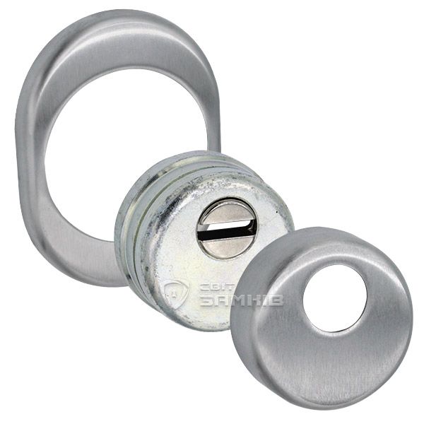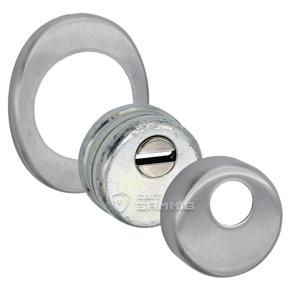 Для монтажу по його діаметру робиться отвір в дверному полотні. Кріпиться довкола серцевини стяжними гвинтами, створюючи монолітну конструкцію з нею. Таким чином, протектор захищає її разом із точкою кріплення в дверях від фізичних та силових методів злому — свердління, виламування та вибивання. Доступу до гвинтів кріплення немає і зірвати саму броненакладку надзвичайно складно. Висота (або товщина) її складає 25/33/42 мм, діаметр - 50 мм. В кольорі “матовий хром” найкраще буде доповнювати двері світлих відтінків - від тепло-сірих до бежевих.