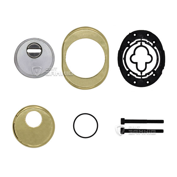 Для монтажу по його діаметру робиться отвір в дверному полотні. Кріпиться довкола серцевини стяжними гвинтами, створюючи монолітну конструкцію з нею. Таким чином, протектор захищає її разом із точкою кріплення в дверях від фізичних та силових методів злому — свердління, виламування та вибивання. Доступу до гвинтів кріплення немає і зірвати саму броненакладку надзвичайно складно. Висота (або товщина) її складає 25/33/42 мм, діаметр - 50 мм. В кольорі “полірована латунь” найкраще буде доповнювати двері світлих відтінків.