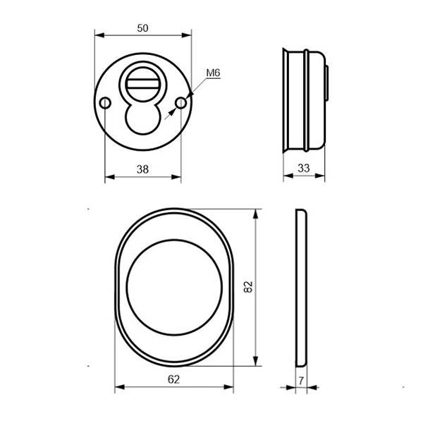 Для монтажу по його діаметру робиться отвір в дверному полотні. Кріпиться довкола серцевини стяжними гвинтами, створюючи монолітну конструкцію з нею. Таким чином, протектор захищає її разом із точкою кріплення в дверях від фізичних та силових методів злому — свердління, виламування та вибивання. Доступу до гвинтів кріплення немає і зірвати саму броненакладку надзвичайно складно. Висота (або товщина) її складає 25/33/42 мм, діаметр - 50 мм. В кольорі “нікель сатин” найкраще буде доповнювати двері світлих відтінків - від тепло-сірих до бежевих.