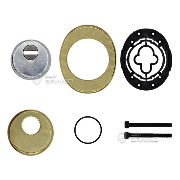 Давно следовало заменить броненакладки на входную дверь. Выбрал Аззи за круглую форму, врезной тип монтажа, т.к. считаю его самым надежным. В установке имею опыт, поэтому занимался этим делом самостоятельно.