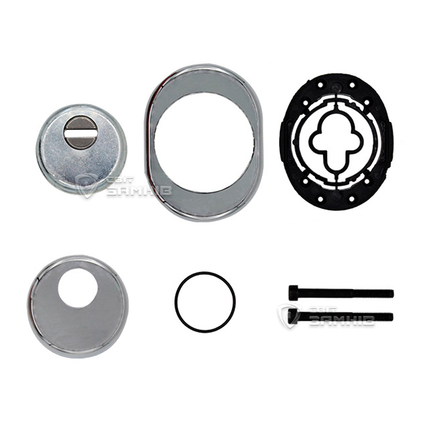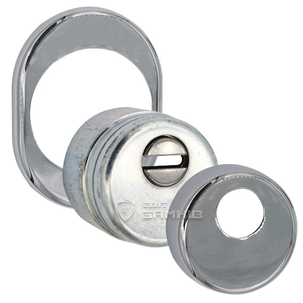 Для монтажу по його діаметру робиться отвір в дверному полотні. Кріпиться довкола серцевини стяжними гвинтами, створюючи монолітну конструкцію з нею. Таким чином, протектор захищає її разом із точкою кріплення в дверях від фізичних та силових методів злому — свердління, виламування та вибивання. Доступу до гвинтів кріплення немає і зірвати саму броненакладку надзвичайно складно. Висота (або товщина) її складає 25/33/42 мм, діаметр - 50 мм. В кольорі “хром” найкраще буде доповнювати двері світлих відтінків - від тепло-сірих до бежевих.