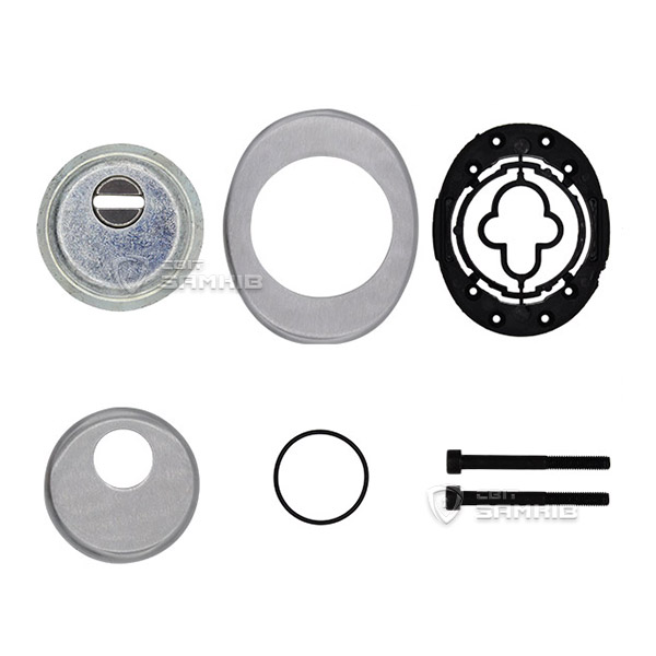 Для монтажу по діаметру протектора робиться отвір в дверному полотні. Кріпиться довкола серцевини стяжними гвинтами, створюючи монолітну конструкцію з нею. Таким чином, протектор захищає її разом із точкою кріплення в дверях від фізичних та силових методів злому — свердління, виламування та вибивання. Доступу до гвинтів кріплення немає і зірвати саму броненакладку надзвичайно складно. Висота (або товщина) її складає 25 мм, діаметр - 50 мм. Комплектується декоративною накладкою розміром 85х70 мм для надання дверному полотну більш охайного вигляду. В кольорі “матовий хром” найкраще буде доповнювати двері світлих відтінків - від тепло-сірих до бежевих.