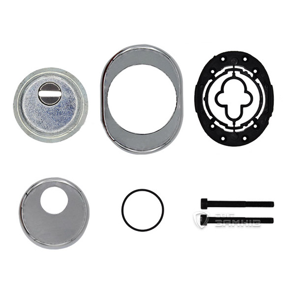 Для монтажу по діаметру протектора робиться отвір в дверному полотні. Кріпиться довкола серцевини стяжними гвинтами, створюючи монолітну конструкцію з нею. Таким чином, протектор захищає її разом із точкою кріплення в дверях від фізичних та силових методів злому — свердління, виламування та вибивання. Доступу до гвинтів кріплення немає і зірвати саму броненакладку надзвичайно складно. Висота (або товщина) її складає 25 мм, діаметр - 50 мм. В кольорі “хром” найкраще буде доповнювати двері світлих відтінків - від тепло-сірих до бежевих.
