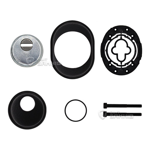 Для монтажу по діаметру протектора робиться отвір в дверному полотні. Кріпиться довкола серцевини стяжними гвинтами, створюючи монолітну конструкцію з нею. Таким чином, протектор захищає її разом із точкою кріплення в дверях від фізичних та силових методів злому — свердління, виламування та вибивання. Доступу до гвинтів кріплення немає і зірвати саму броненакладку надзвичайно складно. Висота (або товщина) її складає 25/33 мм, діаметр - 50 мм. В чорному кольорі найкраще буде доповнювати двері аналогічних відтінків для того, щоб максимально уникнути контрастів та не привертати зайвої уваги.