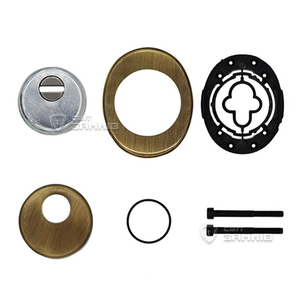 Для монтажу по діаметру протектора робиться отвір в дверному полотні. Кріпиться довкола серцевини стяжними гвинтами, створюючи монолітну конструкцію з нею. Таким чином, протектор захищає її разом із точкою кріплення в дверях від фізичних та силових методів злому — свердління, виламування та вибивання. Доступу до гвинтів кріплення немає і зірвати саму броненакладку надзвичайно складно. Висота (або товщина) її складає 25/33 мм, діаметр - 50 мм. Комплектується декоративною накладкою розміром 85х70 мм для надання дверному полотну більш охайного вигляду. В бронзовому кольорі найкраще буде доповнювати двері з пильно-землистої палітри.