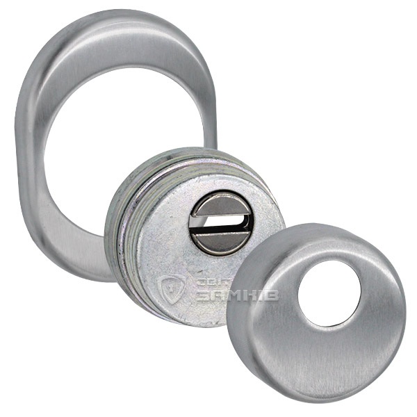 Для монтажу по діаметру протектора робиться отвір в дверному полотні. Кріпиться довкола серцевини стяжними гвинтами, створюючи монолітну конструкцію з нею. Таким чином, протектор захищає її разом із точкою кріплення в дверях від фізичних та силових методів злому — свердління, виламування та вибивання. Доступу до гвинтів кріплення немає і зірвати саму броненакладку надзвичайно складно. Висота (або товщина) її складає 25/33 мм, діаметр - 50 мм. В кольорі “матовий хром” найкраще буде доповнювати двері світлих відтінків - від тепло-сірих до бежевих.