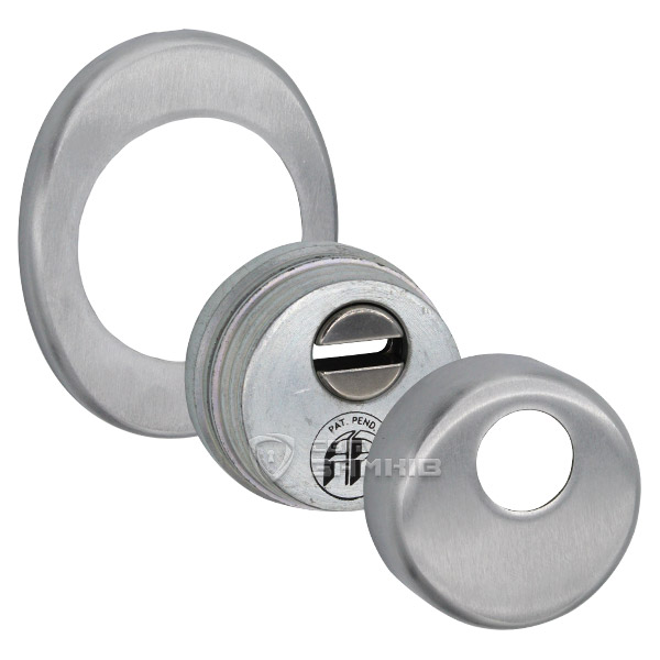 Для монтажу по діаметру протектора робиться отвір в дверному полотні. Кріпиться довкола серцевини стяжними гвинтами, створюючи монолітну конструкцію з нею. Таким чином, протектор захищає її разом із точкою кріплення в дверях від фізичних та силових методів злому — свердління, виламування та вибивання. Доступу до гвинтів кріплення немає і зірвати саму броненакладку надзвичайно складно. Висота (або товщина) її складає 25 мм, діаметр - 50 мм. Комплектується декоративною накладкою розміром 85х70 мм для надання дверному полотну більш охайного вигляду. В кольорі “матовий хром” найкраще буде доповнювати двері світлих відтінків - від тепло-сірих до бежевих.