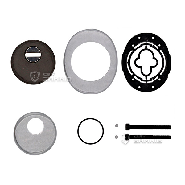 Для монтажу по діаметру протектора робиться отвір в дверному полотні. Кріпиться довкола серцевини стяжними гвинтами, створюючи монолітну конструкцію з нею. Таким чином, протектор захищає її разом із точкою кріплення в дверях від фізичних та силових методів злому — свердління, виламування та вибивання. Доступу до гвинтів кріплення немає і зірвати саму броненакладку надзвичайно складно. Висота (або товщина) її складає 25 мм, діаметр - 50 мм. Комплектується декоративною накладкою розміром 85х70 мм для надання дверному полотну більш охайного вигляду. В кольорі “матовий хром” найкраще буде доповнювати двері світлих відтінків - від тепло-сірих до бежевих.