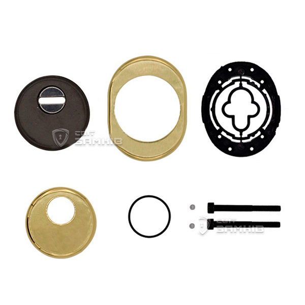 Для монтажу по діаметру протектора робиться отвір в дверному полотні. Кріпиться довкола серцевини стяжними гвинтами, створюючи монолітну конструкцію з нею. Таким чином, протектор захищає її разом із точкою кріплення в дверях від фізичних та силових методів злому — свердління, виламування та вибивання. Доступу до гвинтів кріплення немає і зірвати саму броненакладку надзвичайно складно. Висота (або товщина) її складає 25 мм, діаметр - 50 мм. В кольорі “полірована латунь” найкраще буде доповнювати двері світлих відтінків.