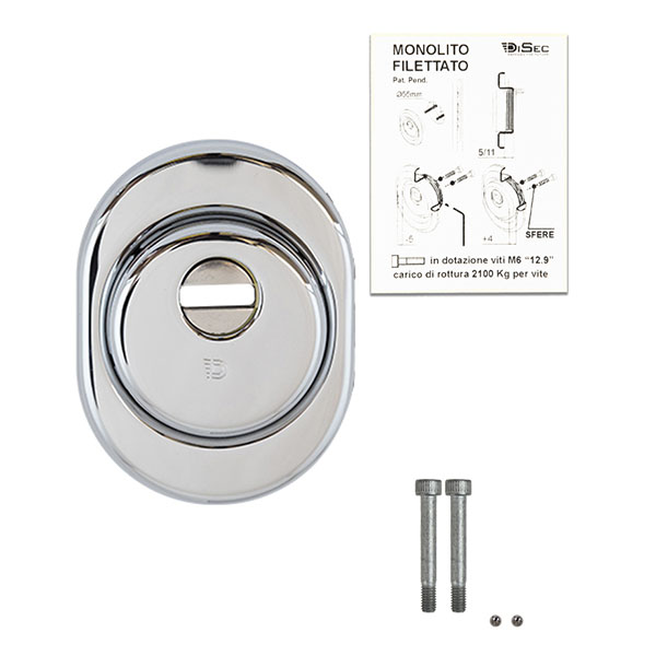 Дана модель DISEC MONOLITO BD250 встановлюється на вхідні двері разом із замками і серцевинами стандарту EURO DIN. Це захисний гартований протектор з 3-м класом зламостійкості. Для захисту від свердління та використання фрез диск в корпусі виготовлений із марганцевої сталі, а лицьова сторона має рифлену поверхню. Також встановлені спеціальні штифти з карбіду вольфраму, що служать для перешкоджання фрезерування. Броненакладка виготовлена із гартованої сталі.