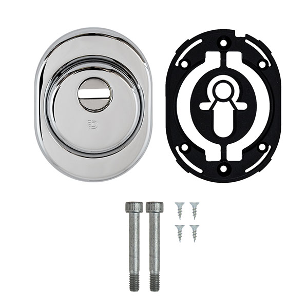 Монтується врізним методом: по його діаметру робиться отвір в дверному полотні. Кріпиться наскрізно довкола серцевини стяжними гвинтами М6 з технологією Flex. Її суть заключається в дрібнішій різьбі та спеціальній насічці. Завдяки цьому та спеціальному виду твердої сталі гвинти витримують навантаження в 5 раз більше, ніж звичайні. Так вони створюють монолітну конструкцію із серцевиною. Таким чином, протектор захищає її разом із точкою кріплення в дверях від фізичних та силових методів зламу — свердління, виламування та вибивання. Для додаткового захисту від свердління в отвори кріплення встановлюються гартовані кульки (не входять до стандартного комплекту). Доступу до гвинтів кріплення немає і зірвати саму броненакладку надзвичайно складно.