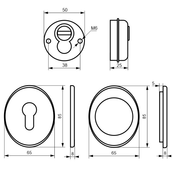 Накладки сувальдні KEDR ET 08 зовнішня+внутрішня BLACK MAT матовий чорний