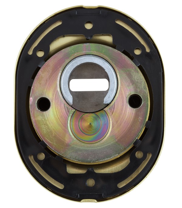 Монтується врізним методом: по його діаметру робиться отвір в дверному полотні. Кріпиться наскрізно довкола серцевини стяжними гвинтами М6 з технологією Flex. Її суть заключається в дрібнішій різьбі та спеціальній насічці. Завдяки цьому та спеціальному виду твердої сталі гвинти витримують навантаження в 5 раз більше, ніж звичайні. Так вони створюють монолітну конструкцію із серцевиною. Таким чином, протектор захищає її разом із точкою кріплення в дверях від фізичних та силових методів злому — свердління, виламування та вибивання. Для додаткового захисту від свердління в отвори кріплення встановлюються загартовані кульки (входять до стандартного комплекту). Доступу до гвинтів кріплення немає і зірвати саму броненакладку надзвичайно складно. Висота (або товщина) протектора складає 25 мм, діаметр - 50 мм. В кольорі “латунь матова” найкраще буде доповнювати двері світлих відтінків з бархатистим і соковитим покриттям - тим же шпоном вишні або груші.