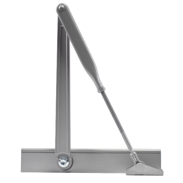 Сила закривання регулюється в діапазоні EN 2-4 за допомогою гвинта, розташованого збоку на корпусі. У даній комплектації передбачена стандартна тяга без функції фіксації дверей у відкритому положенні. Водночас цей дотягувач повністю сертифікований для використання з протипожежними дверима, що робить його ідеальним рішенням для об’єктів із підвищеними вимогами до безпеки.