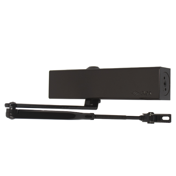 Сила закривання відповідає класу EN 2-6 і регулюється за допомогою гвинта на боковій стороні корпусу. Це дозволяє адаптувати дотягувач під різні типи дверей, залежно від їх ваги та розміру. У комплекті передбачена стандартна тяга без функції фіксації дверного полотна у відкритому положенні. Водночас модель сертифікована для використання з протипожежними дверима, що робить її надійним вибором для приміщень із високими вимогами до пожежної безпеки.