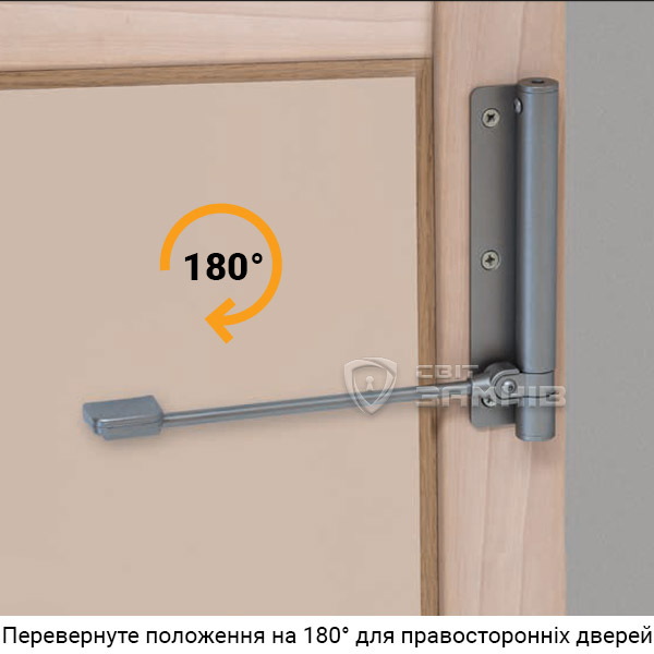 • Можливий монтаж на правосторонніх дверях, перевернувши дотягувач на 180°.