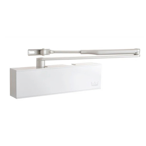 Німецька ТМ DORMA є одним із провідних виробників систем для автоматичних дверей та фурнітури для них. Дана модель дотягувача DORMA TS72 EN2-4 STD HO встановлюється накладним монтажем переважно лише на внутрішні дверні полотна з максимальною вагою до 80 кг та шириною від 750 до 1100 мм. Безпосередньо на корпусі є можливість регулювати основну швидкість в діапазоні 180°-15° та швидкість захлопування - 15°-0°. Загалом завдяки таким можливостям регулювання можна добитись максимально індивідуального налаштування зачинення дверей. Гідравлічне масло в даній моделі високої якості. Завдяки цьому проблем при роботі дотягувача при перепаді температур не буде. Взагалі його робоча температура варіюється в діапазоні від -15°С до +40°С. В даній комплектації присутня стандартна тяга з фіксацією дверного полотна у відкритому положенні до 150°. Це додає додаткової зручності в тих місцях, де не потрібно відчиняти їх повністю. В білому кольорі найкраще буде доповнювати двері аналогічних світлих відтінків для того, щоб максимально уникнути контрастів та не привертати зайвої уваги.