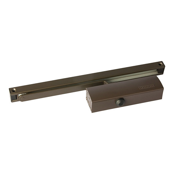Серед продукції німецького виробника GEZE особливо виділяється дверна фурнітура для автоматичного закривання дверей, а саме - дотягувачі. Дана модель GEZE TS 3000 VBC SLD встановлюється накладним монтажем на внутрішні та зовнішні дверні полотна з максимальною вагою до 80 кг та шириною до 1100 мм. Безпосередньо на корпусі є можливість регулювати основну швидкість, швидкість захлопування та гальмо відчинення. Дана функція захищає дверне полотно від удару об стіну та виривання тяги дотягувача. Загалом завдяки таким можливостям регулювання можна добитись максимально індивідуального налаштування зачинення дверей. Гідравлічне масло в даній моделі високої якості. Завдяки цьому проблем при роботі дотягувача при перепаді температур не буде. Взагалі його робоча температура варіюється в діапазоні від -15°С до +40°С. В даній комплектації присутня ковзна тяга без фіксації дверного полотна у відкритому положенні. Проте даний дотягувач сертифікований для використання з протипожежними дверима. В коричневому кольорі найкраще буде доповнювати двері аналогічних темних відтінків для того, щоб максимально уникнути контрастів та не привертати зайвої уваги.