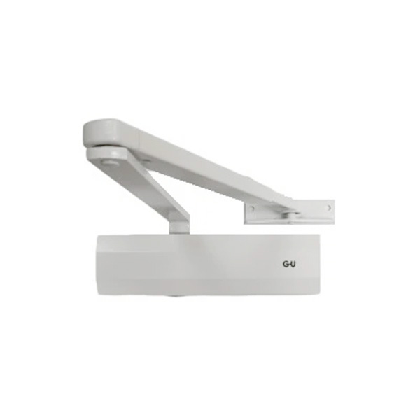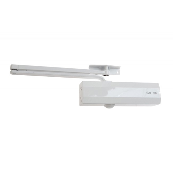 Німецький виробник G-U вже більше століття спеціалізується на випуску дверної та віконної фурнітури. Дана модель дотягувача GU ОТS 210 STD встановлюється накладним монтажем на внутрішні та зовнішні дверні полотна з максимальною вагою до 80 кг та шириною до 1100 мм. Безпосередньо на корпусі є можливість регулювати основну швидкість, швидкість захлопування та гальмо відчинення. Дана функція захищає дверне полотно від удару об стіну та виривання тяги дотягувача. Загалом завдяки таким можливостям регулювання можна добитись максимально індивідуального налаштування зачинення дверей так, як Вам потрібно. Гідравлічне масло в даній моделі високої якості. Завдяки цьому проблем при роботі дотягувача при перепаді температур не буде. Взагалі його робоча температура варіюється в діапазоні від -15°С до +40°С. В даній комплектації присутня стандартна тяга без фіксації дверного полотна у відкритому положенні. В білому кольорі найкраще буде доповнювати двері аналогічних світлих відтінків для того, щоб максимально уникнути контрастів та не привертати зайвої уваги.