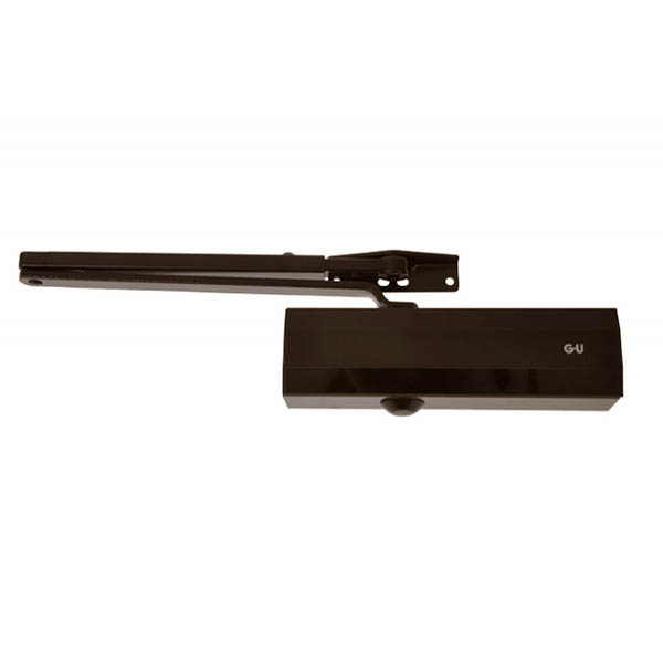 Німецький виробник G-U вже більше століття спеціалізується на випуску дверної та віконної фурнітури. Дана модель дотягувача GU ОТS 210 STD HO встановлюється накладним монтажем на внутрішні та зовнішні дверні полотна з максимальною вагою до 80 кг та шириною до 1100 мм. Безпосередньо на корпусі є можливість регулювати основну швидкість, швидкість захлопування та гальмо відчинення. Дана функція захищає дверне полотно від удару об стіну та виривання тяги дотягувача. Загалом завдяки таким можливостям регулювання можна добитись максимально індивідуального налаштування зачинення дверей так, як Вам потрібно. Гідравлічне масло в даній моделі високої якості. Завдяки цьому проблем при роботі дотягувача при перепаді температур не буде. Взагалі його робоча температура варіюється в діапазоні від -15°С до +40°С. В даній комплектації присутня стандартна тяга з фіксацією дверного полотна у відкритому положенні в межах 70°-150°. Це дає можливість залишити двері відчиненими для провітрювання чи для зручності користування у комерційних приміщеннях. В коричневому кольорі найкраще буде доповнювати двері аналогічних темних відтінків для того, щоб максимально уникнути контрастів та не привертати зайвої уваги.