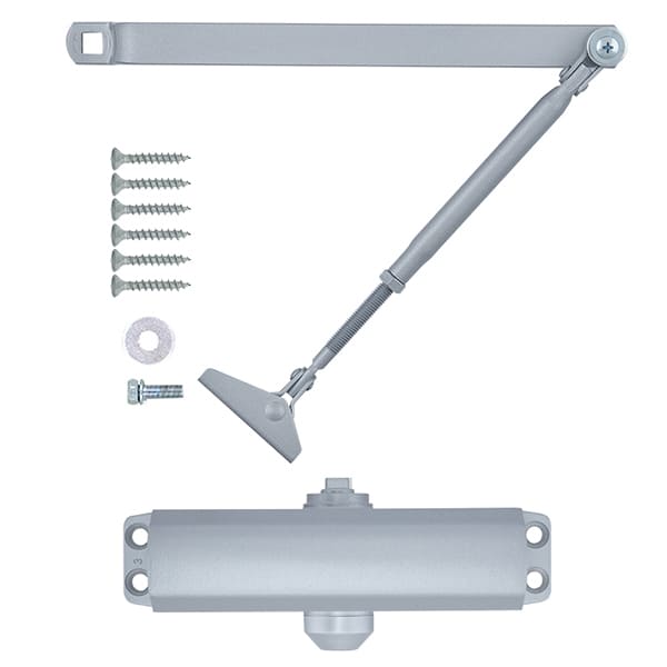Продукція японського виробника RYOBI по праву визнана в усьому світі завдяки своїй відмінній якості. Дана модель RYOBI 9903 STD встановлюється накладним монтажем на легкі дверні полотна масою до 60 кг та шириною до 950 мм. Гідравлічний привід забезпечує чітку роботу дотягувача з кутом відкривання до 180°. Безпосередньо на корпусі є можливість регулювати основну швидкість в межах 180°-10° та швидкість захлопування - 10°-0°. Завдяки цьому можна досягнути індивідуального налаштування зачинення дверей так як Вам потрібно. Особливістю дотягувачів RYOBI є спеціальне термоконстантне масло. Воно забезпечує стабільну роботу навіть при великому перепаді температур. Взагалі робоча температура варіюється в діапазоні від -20 до +45°С. RYOBI 9903 STD може бути встановлений на ліво і правосторонні двері з можливістю відкривання як всередину так і назовні. В даній комплектації присутня стандартная тяга без фіксації дверей у відчиненому стані. В сірому кольорі найкраще буде доповнювати двері подібних відтінків для того, щоб максимально уникнути контрастів та не привертати зайвої уваги.