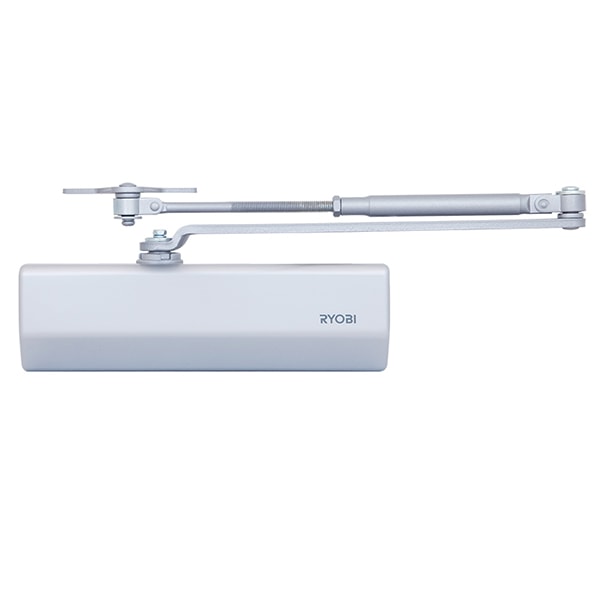 Продукція японського виробника RYOBI по праву визнана в усьому світі завдяки своїй відмінній якості. Дана модель RYOBI D-1554 UNIV встановлюється накладним монтажем на легкі дверні полотна масою до 80 кг та шириною до 1200 мм. Є можливість встановлення за допомогою кронштейна паралельного положення тяги відносно дверей задля збереження дизайну приміщення чи використання дотягувача в умовах обмеженого простору. Тоді максимальна вага і ширина полотна повинні бути меншими. Гідравлічний привід забезпечує чітку роботу дотягувача з кутом відкривання до 180°. Безпосередньо на корпусі є можливість регулювати основну швидкість в межах 180°-10°, та швидкість захлопування - 10°-0°. Завдяки цьому можна досягнути індивідуального налаштування зачинення дверей так як Вам потрібно. Особливістю дотягувачів RYOBI є спеціальне термоконстантне масло. Воно забезпечує стабільну роботу навіть при великому перепаді температур. Взагалі робоча температура варіюється в діапазоні від -20 до +45°С. RYOBI D-1554 UNIV може бути встановлений на ліво і правосторонні двері з можливістю відкривання як всередину так і назовні. В даній комплектації присутня стандартна тяга без фіксації дверного полотна у відкритому положенні. Проте даний дотягувач сертифікований для використання з протипожежними дверима. В сірому кольорі найкраще буде доповнювати двері подібних відтінків для того, щоб максимально уникнути контрастів та не привертати зайвої уваги.