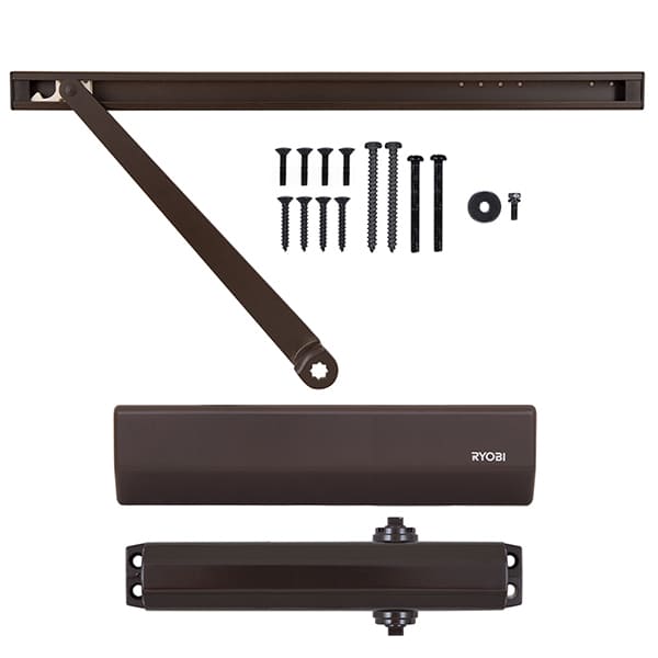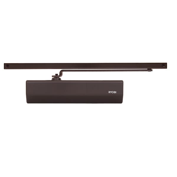 Продукція японського виробника RYOBI по праву визнана в усьому світі завдяки своїй відмінній якості. Дана модель RYOBI D-2050T BC SLD встановлюється накладним монтажем на дверні полотна масою до 60 кг та шириною до 950 мм. Гідравлічний привід забезпечує чітку роботу дотягувача з кутом відкривання до 120°. Безпосередньо на корпусі є можливість регулювати основну швидкість в межах 120°-10°, швидкість захлопування - 10°-0° та гальмо відчинення - 75°-120°. Дана функція захищає дверне полотно від удару об стіну та виривання тяги дотягувача. Завдяки цьому можна досягнути індивідуального налаштування зачинення дверей так як Вам потрібно. Особливістю дотягувачів RYOBI є спеціальне термоконстантне масло. Воно забезпечує стабільну роботу навіть при великому перепаді температур. Взагалі робоча температура варіюється в діапазоні від -20 до +45°С. RYOBI D-2050T BC SLD може бути встановлений на ліво і правосторонні двері з можливістю відкривання як всередину так і назовні. В даній комплектації присутня ковзна тяга без фіксації дверного полотна у відкритому положенні. Проте даний дотягувач сертифікований для використання з протипожежними дверима. В коричневому кольорі найкраще буде доповнювати двері подібних темних відтінків для того, щоб максимально уникнути контрастів та не привертати зайвої уваги.