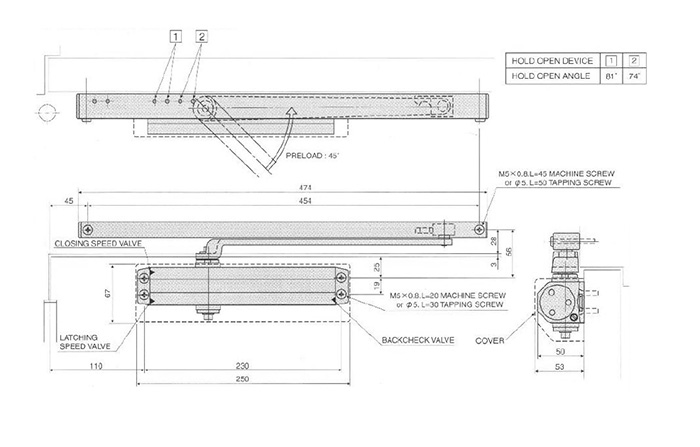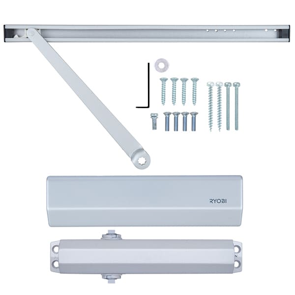 Продукція японського виробника RYOBI по праву визнана в усьому світі завдяки своїй відмінній якості. Дана модель RYOBI D-2050T BC SLD встановлюється накладним монтажем на дверні полотна масою до 60 кг та шириною до 950 мм. Гідравлічний привід забезпечує чітку роботу дотягувача з кутом відкривання до 120°. Безпосередньо на корпусі є можливість регулювати основну швидкість в межах 120°-10°, швидкість захлопування - 10°-0° та гальмо відчинення - 75°-120°. Дана функція захищає дверне полотно від удару об стіну та виривання тяги дотягувача. Завдяки цьому можна досягнути індивідуального налаштування зачинення дверей так як Вам потрібно. Особливістю дотягувачів RYOBI є спеціальне термоконстантне масло. Воно забезпечує стабільну роботу навіть при великому перепаді температур. Взагалі робоча температура варіюється в діапазоні від -20 до +45°С. RYOBI D-2050T BC SLD може бути встановлений на ліво і правосторонні двері з можливістю відкривання як всередину так і назовні. В даній комплектації присутня ковзна тяга без фіксації дверного полотна у відкритому положенні. Проте даний дотягувач сертифікований для використання з протипожежними дверима. В сірому кольорі найкраще буде доповнювати двері подібних відтінків для того, щоб максимально уникнути контрастів та не привертати зайвої уваги.