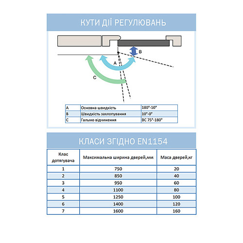 Після чого потрібно визначити ширину і вагу дверного полотна, з яким він буде працювати, та де він буде встановлений - на вулиці чи в приміщенні. Це є важливим при виборі. Також потрібно розуміти яка буде прохідність людей (іншими словами - як часто двері будуть відчинятись). Зрозуміло що чим більші ці значення, тим сильніший і надійніший дотягувач Вам потрібен.