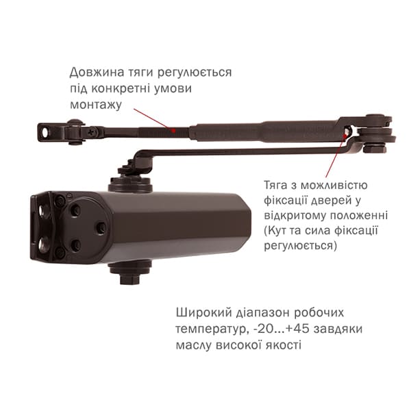 | Тип тяги дотягувача | стандартна з фіксацією | |