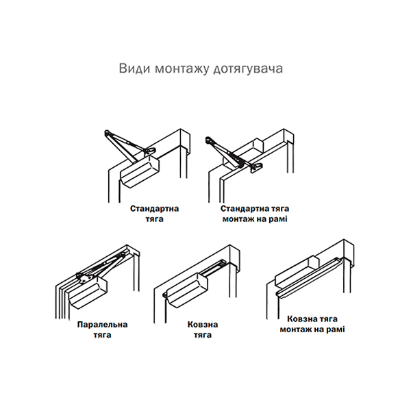 Дотягувач - це пристрій автоматичного закривання дверей. Тому, обираючи його, вам потрібно визначити який тип дотягувача вам потрібен.