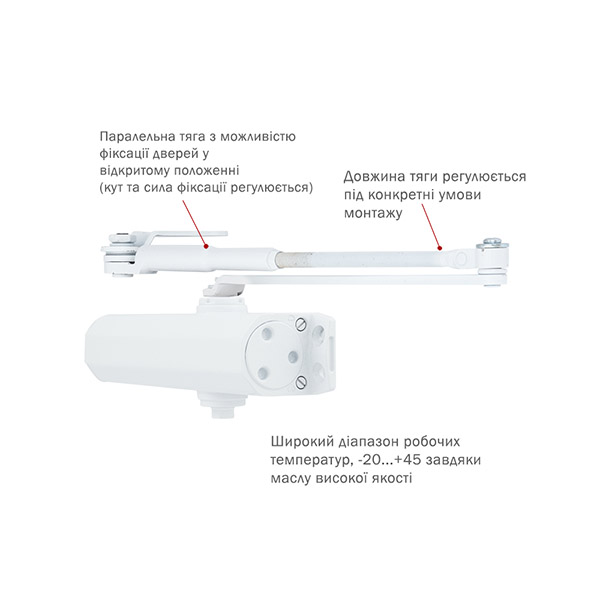 | Тип тяги дотягувача | паралельна з фіксацією | |