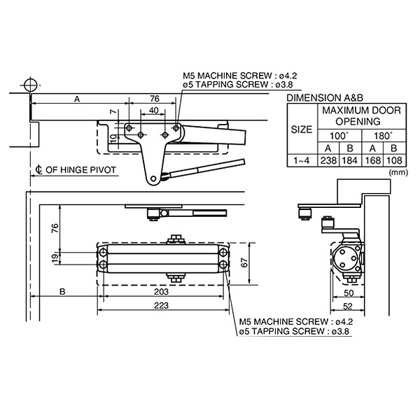 Продукція японського виробника RYOBI по праву визнана в усьому світі завдяки своїй відмінній якості. Дана модель RYOBI DS-1554P PRL HO встановлюється накладним монтажем на дверні полотна масою до 60 кг та шириною до 950 мм. Гідравлічний привід забезпечує чітку роботу дотягувача з кутом відкривання до 180°. Безпосередньо на корпусі є можливість регулювати основну швидкість в межах 180°-10° та швидкість захлопування - 10°-0°. Завдяки цьому можна досягнути індивідуального налаштування зачинення дверей так як Вам потрібно. Особливістю дотягувачів RYOBI є спеціальне термоконстантне масло. Воно забезпечує стабільну роботу навіть при великому перепаді температур. Взагалі робоча температура варіюється в діапазоні від -20 до +45°С. RYOBI DS-1554P PRL HO може бути встановлений на ліво і правосторонні двері з можливістю відкривання як всередину так і назовні. В даній комплектації присутня паралельна тяга з фіксацією дверного полотна у відкритому положенні в регульованому діапазоні 70°-180°. Це дає можливість зберегти дизайн приміщення там, де потрібно, щоб дотягувач не виділявся чи взагалі було можливе його встановлення в умовах обмеженого простору. Фіксація ж дасть змогу залишити двері відчиненими для провітрювання чи для зручності користування у комерційних приміщеннях. В коричневому кольорі найкраще буде доповнювати двері подібних темних відтінків для того, щоб максимально уникнути контрастів та не привертати зайвої уваги.