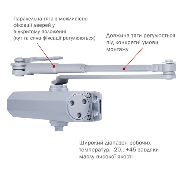 | Тип тяги дотягувача | паралельна з фіксацією | |