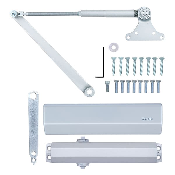 Продукція японського виробника RYOBI по праву визнана в усьому світі завдяки своїй відмінній якості. Дана модель RYOBI DS-2055P BC PRL HO встановлюється накладним монтажем на дверні полотна масою до 80 кг та шириною до 1100 мм. Гідравлічний привід забезпечує чітку роботу дотягувача з кутом відкривання до 180°. Безпосередньо на корпусі є можливість регулювати основну швидкість в межах 180°-10°, швидкість захлопування - 10°-0° та гальмо відчинення - 75°-180°. Дана функція захищає дверне полотно від удару об стіну та виривання тяги дотягувача. Завдяки цьому можна досягнути індивідуального налаштування зачинення дверей так як Вам потрібно. Особливістю дотягувачів RYOBI є спеціальне термоконстантне масло. Воно забезпечує стабільну роботу навіть при великому перепаді температур. Взагалі робоча температура варіюється в діапазоні від -20 до +45°С. RYOBI DS-2055P BC PRL HO може бути встановлений на ліво і правосторонні двері з можливістю відкривання як всередину так і назовні. В даній комплектації присутня паралельна тяга з фіксацією дверного полотна у відкритому положенні в регульованому діапазоні 70°-180°. Це дає можливість зберегти дизайн приміщення там, де потрібно, щоб дотягувач не виділявся чи взагалі було можливе його встановлення в умовах обмеженого простору. Фіксація ж дасть змогу залишити двері відчиненими для провітрювання чи для зручності користування у комерційних приміщеннях. В сірому кольорі найкраще буде доповнювати двері подібних відтінків для того, щоб максимально уникнути контрастів та не привертати зайвої уваги.