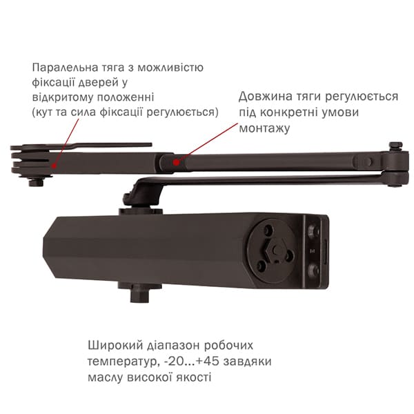 | Тип тяги дотягувача | паралельна з фіксацією | |