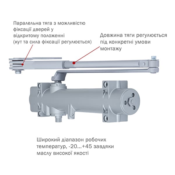 | Тип тяги дотягувача | паралельна з фіксацією | |