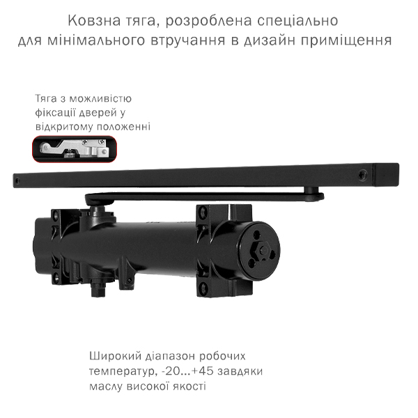 Також слід розуміти які додаткові функції Вам потрібні. Окрім стандартного дотягування дверного полотна, більш дорожчі моделі мають функцію фіксації у відкритому положенні. Це створює додаткову зручність, адже можна зафіксувати двері у відчиненому стані. Можливі нюанси і стосовно місця встановлення. До прикладу, якщо заважає стіна, то потрібно ставити монтажну пластину або дотягувач із ковзною тягою, він виглядає набагато естетичніше, але ставлять його переважно на легкі двері.